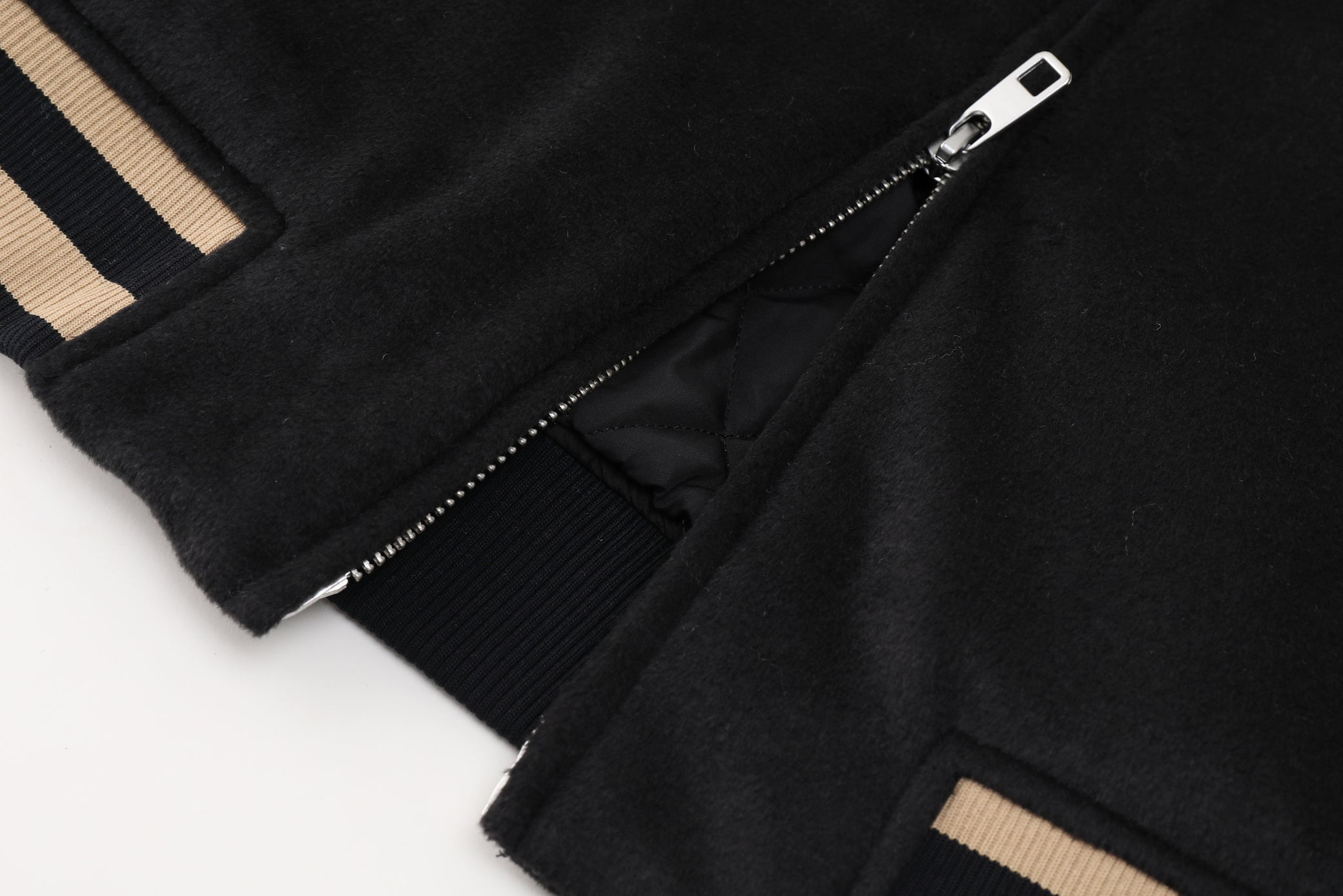 Bords côtelés, fermeture pratique et doublure matelassée.